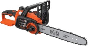 12″ high-strength guide bar with low-kickback chain cuts hardwood, softwood, and branches up to 12″ easily.