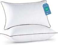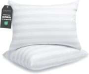 Set includes two hotel-quality standard-size pillows with reinforced seams and excellent stitching for durability.